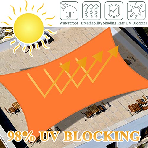 Teynewer - Sun Shade Sail Rectangle 3x4m Waterproof Shade Sail for Outdoor Garden Patio Party 98% UV Block Sunscreen Awning Canopy Sunsail with Free Rope, Orange