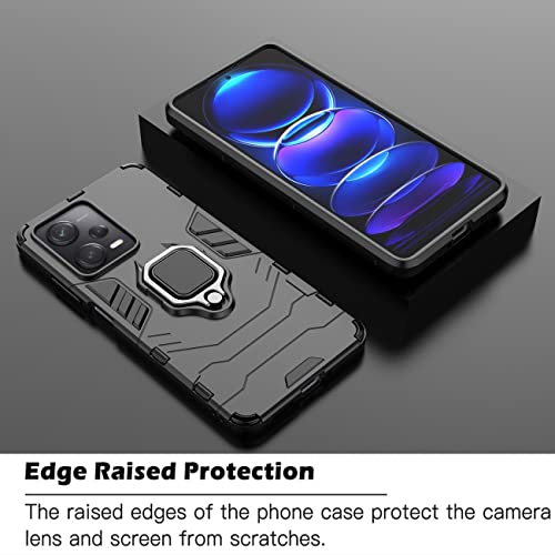 TEYYOS - جراب هايبرد من البولي يوريثين الحراري والبولي كربونات مع حامل 360 درجة سيليكون قوي مضاد للصدمات تيوس لموبايل شاومي بوكو X5 برو اسود