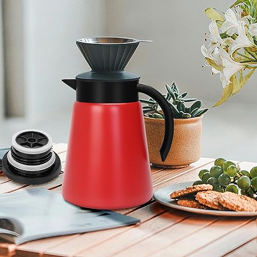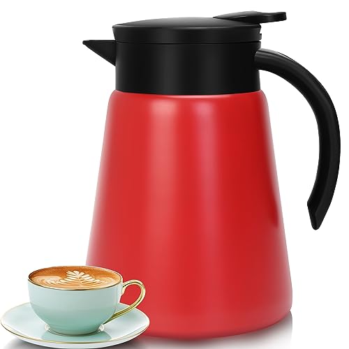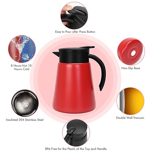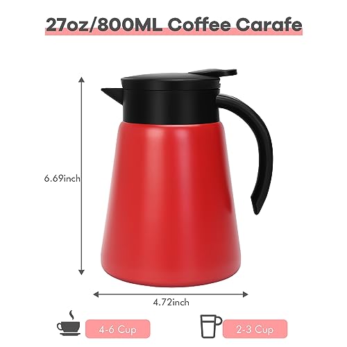 Tgvasz - إبريق قهوة حراري سعة 765.43 جرام للحفاظ على السخونة من تجفاسز، ابريق قهوة معزول بتفريغ الهواء من الستانلس ستيل للقهوة والماء الساخن والشاي والحفاظ على الحرارة لمدة 10 ساعات (أحمر)