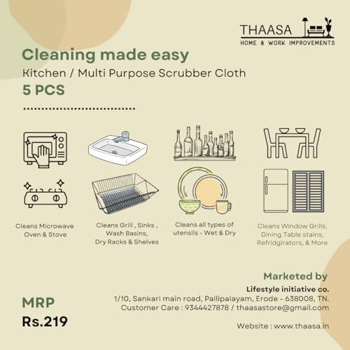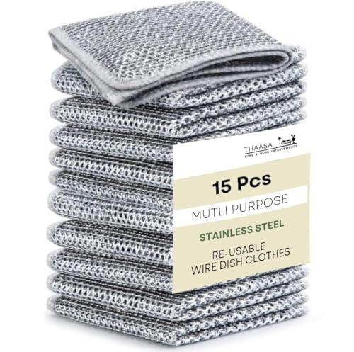 THAASA - Multipurpose Wire Dishwashing Scrub Rags | Mesh Cloth | Wet and Dry Surfaces | Scrubber | Non-Scratchable | for Washing Dishes, Sinks, Counters | Easy Rinsing | Machine Washable | 2 Layer (10)