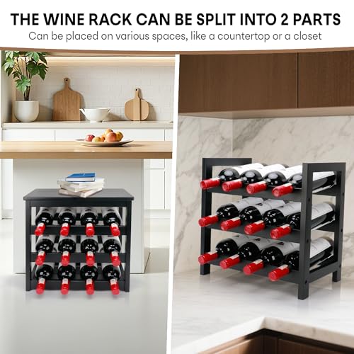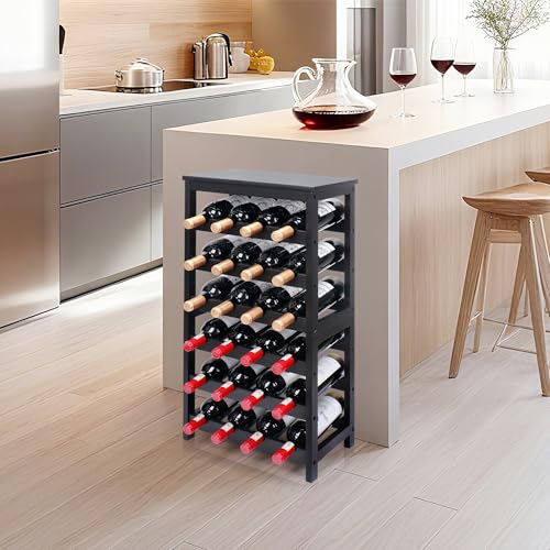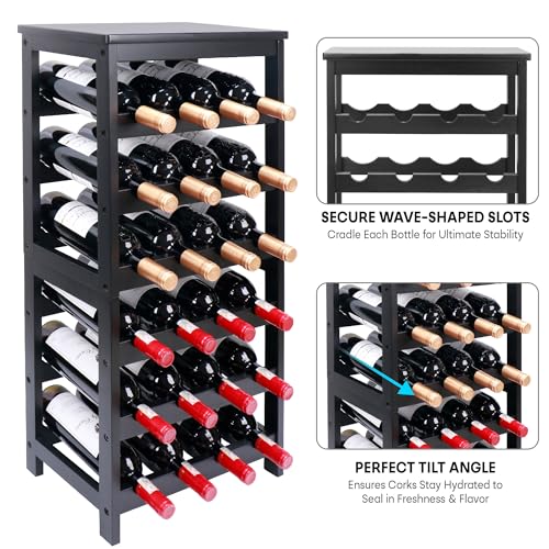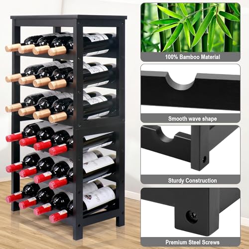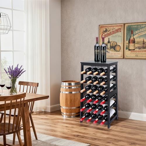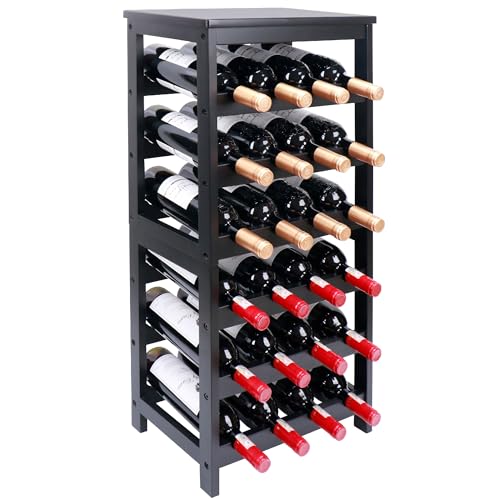 Thalomely - رف مشروبات قائم بذاته من ثالوميلي، 6 طبقات لعرض 24 زجاجة، رفوف تخزين النبيذ مع سطح طاولة، رفوف مشروبات من الخيزران سهلة التجميع للمطبخ وغرفة الطعام والبار، اسود