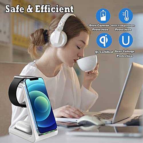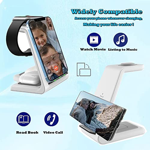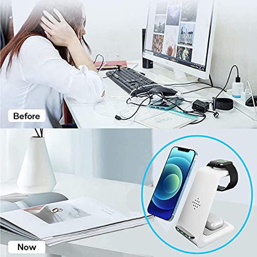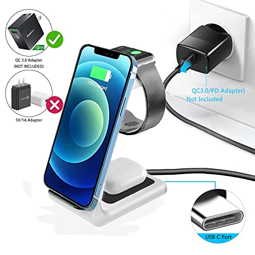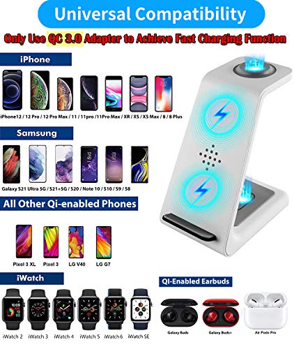 - ❤ [3 in 1 Charging Station for Multiple Devices] This iphone charging station can charge iPhone 13 / 13 Pro / 13 Pro max / 12 / 12 Pro / 12 Pro max / 11 / 11 Pro max / SE / X / XR / XS / xsmax / 8 plus, airplads Pro / 2 and more headsets supporting Qi. Apple watch charger, suitable for Iwatch Se / 6 / 5 / 4 / 3 / 2 charging. Say goodbye to the messy wires. This is also a good wireless charging station for travel For a better charging experience, please use the fast charging 3.0 power adapter.