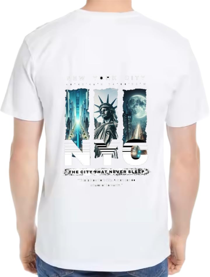 Generic - تي شيرت مطبوع عليه The CITY THAT NEVER SLEEPS بلون ابيض