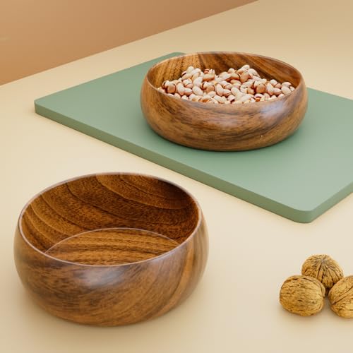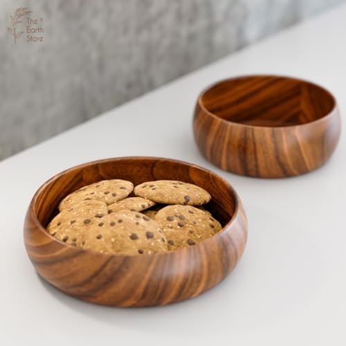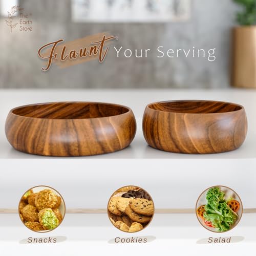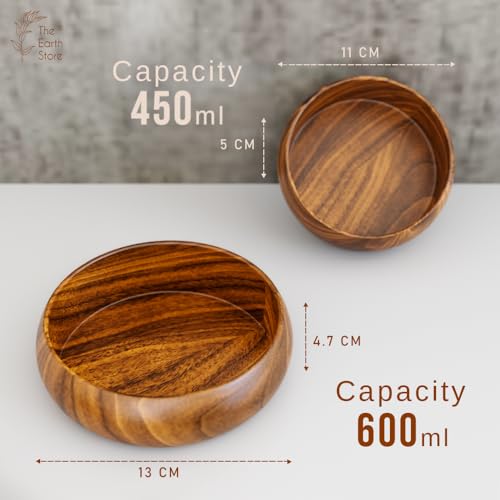 The Earth Store - بولات تقديم خشبية متعددة الأغراض مصنوعة يدويًا للفطار والوجبات الخفيفة والشوربة والسلطة والفواكه الجافة والكوكيز، مجموعة أوعية خشبية للمطبخ من ذا ايرث ستور، مجموعة من قطعتين