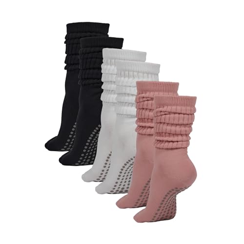 The Good Store - جوارب يوجا فضفاضة للنساء من ذا جود ستور | 3 ازواج | جوارب ضغط لأسفل غير قابلة للانزلاق | بيلاتيس وباري وباليه والرقص والتمارين الرياضية