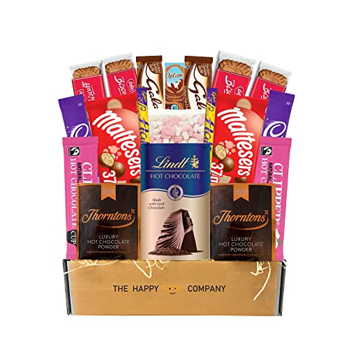 - CHOCOLATE LOVERS DELIGHT: Perfect for all who love the creamy texture of hot chocolate while curled up on the sofa. Comes in wrapped in tissue paper and boxed. 3) Complimented with Thornton's Luxury Hot Chocolate Sachets x 2, Cadbury Hot Chocolate x 2, Clipper Hot chocolate x 2, Galaxy hot chocolate Sachets x 2, Options Belgium Chocolate x 1, Malteasers x 2, flake x 2 and Marshmallows x 1