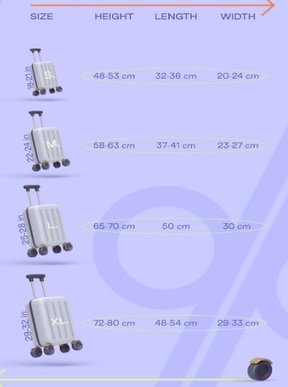 - نطاق المقاس: متوفر بأربعة مقاسات - S (48-53 سم)، M (58-63 سم)، L (66-70 سم)، XL (72-80 سم) ليناسب أبعاد الحقيبة المختلفة