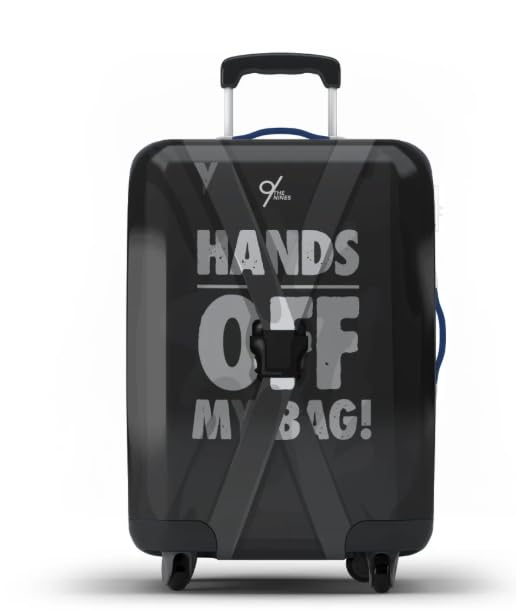 - بيان التصميم: يتميز برسالة رسومية جريئة "Hands Off" على قماش أسود قابل للتمدد، مما يضيف طابعًا شخصيًا ورادعًا إلى أمتعتك