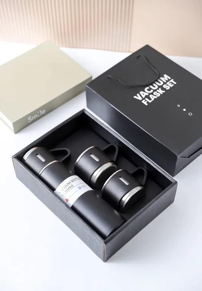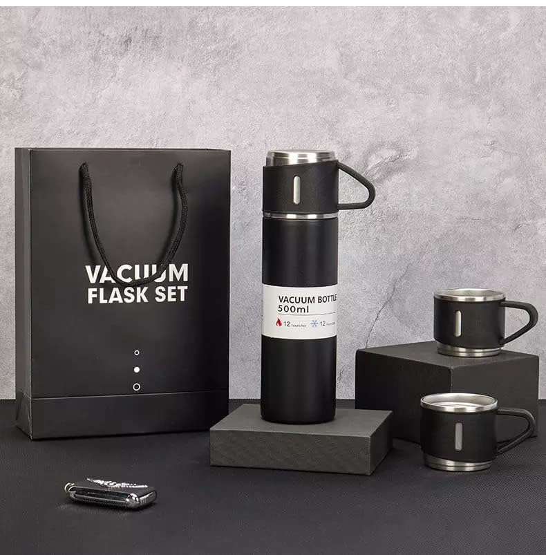 The Noble - The Noble 304 Stainless Steel Thermo 500ml/16.9oz Vacuum Insulated Bottle with Cup for Coffee Hot drink and Cold drink water flask.Termo de Acero Inoxidable Termo Para Mate(Black Set)