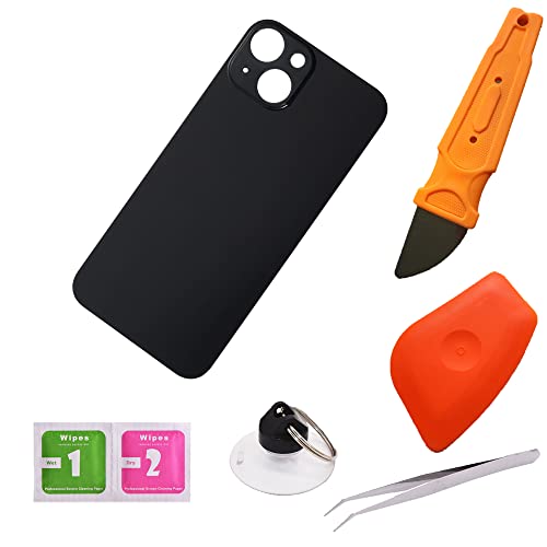 THE TECH DOCTOR - Replacement Glass Back Cover Rear Housing for iPhone 13 Mini - Complete with Tools - Professional Repair Kit (Black)