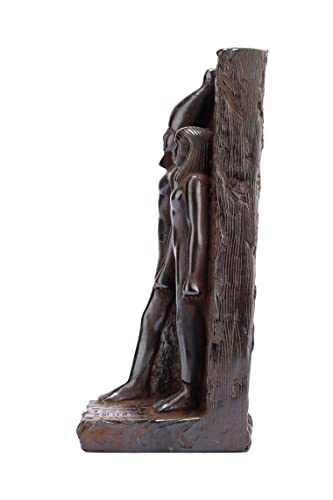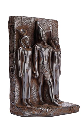 generic - The triads of Menkaure pharaoh, stands between the goddess Hathor is on his right and goddess (bat) is on his left black heavy stone made in Egypt.