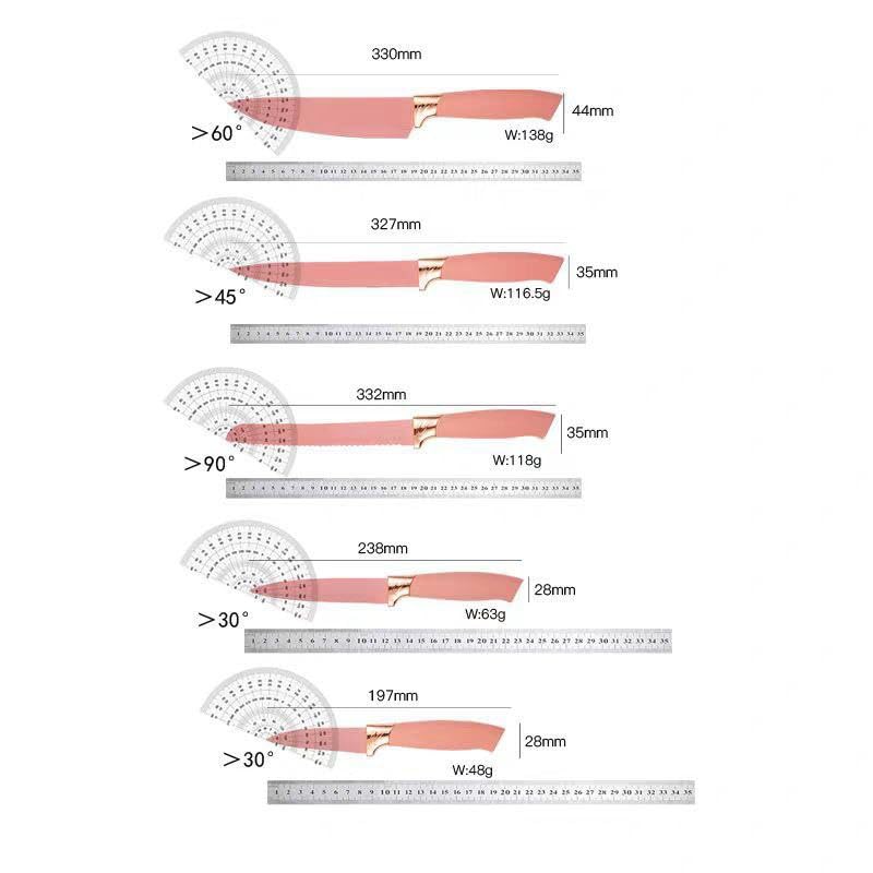 - يحتوي الطقم على 5 سكاكين متنوعة الأحجام، مما يساعد في تلبية احتياجات مختلفة للطهي.