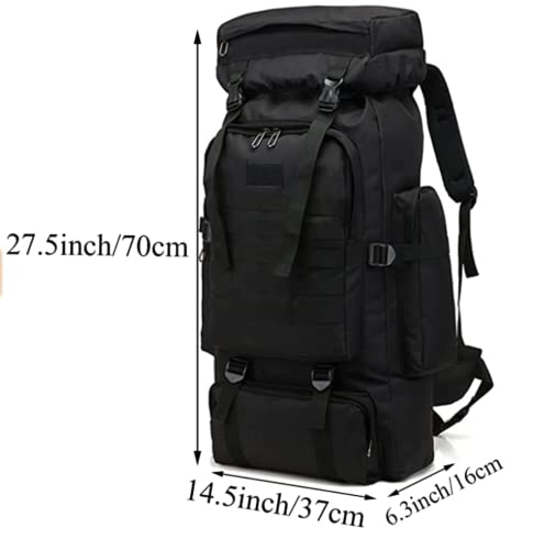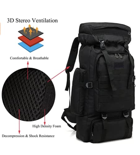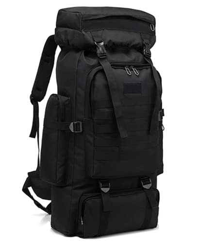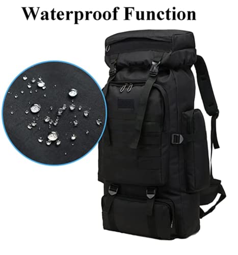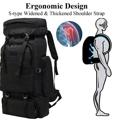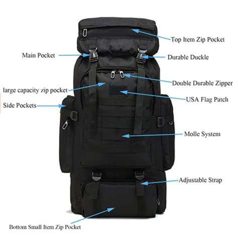 - 【Large Capacity and Multi Compartment】The 80L large capacity camping backpack, main storage bag with elastic drawstrings that can expand the pack, it's roomy enough for you to put in sleeping bag, mat, hammock or shoes and luggage , one laptop compartment, one front zipper pockage and two side pocket for water botle or umbrella.