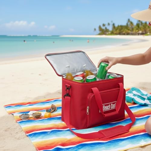 Generic - Thermal Bag 25L Insulated Cooler Lunch Bag Large Capacity Hot Cold Food Carrier Picnic Storage Waterproof Durable Shoulder Strap (red)