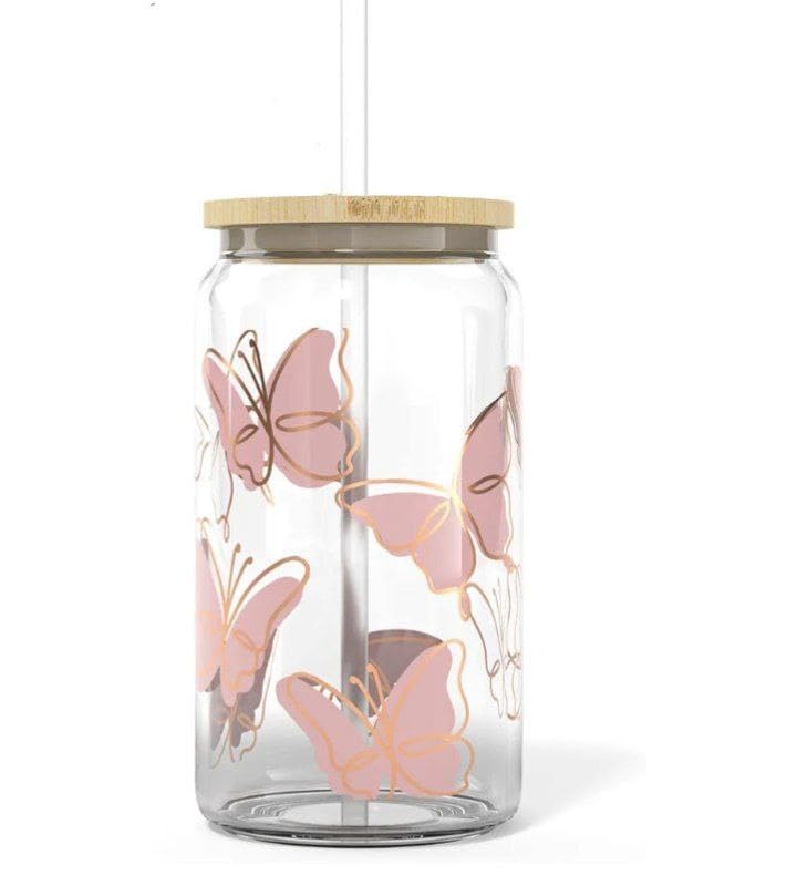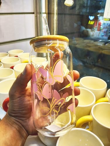 - PREMIUM PYREX THERMAL DESIGN: Made from high-quality heat-resistant Pyrex glass that maintains the temperature of hot and cold drinks while offering exceptional durability. The elegant butterfly print adds a charming touch, making it perfect for everyday hydration, travel, or gifting. Its smooth glass structure ensures a clean taste with every sip.
