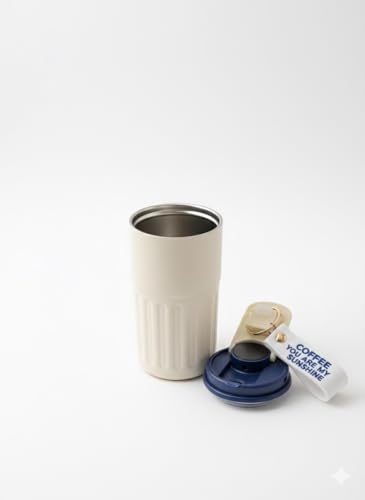 Generic - Thermal Coffee Mug 460ml 304 Stainless Steel Off White with Temperature Display, Multicolor Lid, Thermal Insulated Coffee Mug for Hot and Cold Drinks (Blue)