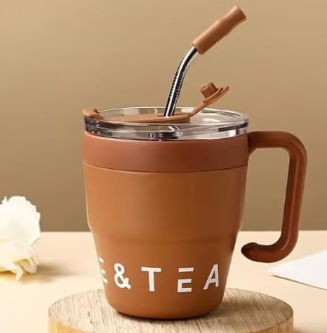 Generic - Thermal Coffee Mug with Lid and Stainless Steel Straw 480ml Leakproof Thermal Bottle, Tea and Coffee Cup, Vacuum Flask, Insulated Mugs BROWEN