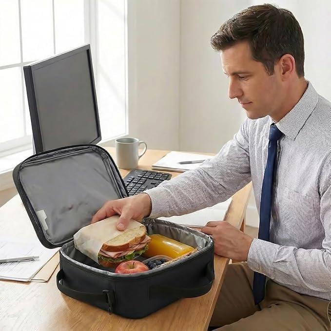 Generic - Thermal Lunch Bag 9 L Insulated Food Carrier Waterproof Leakproof Cooler Tote for Office School Picnic Travel(BB-531) (black)