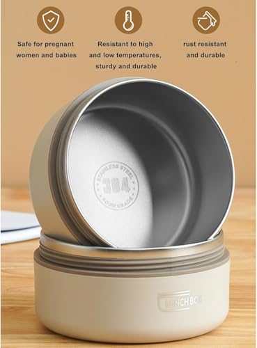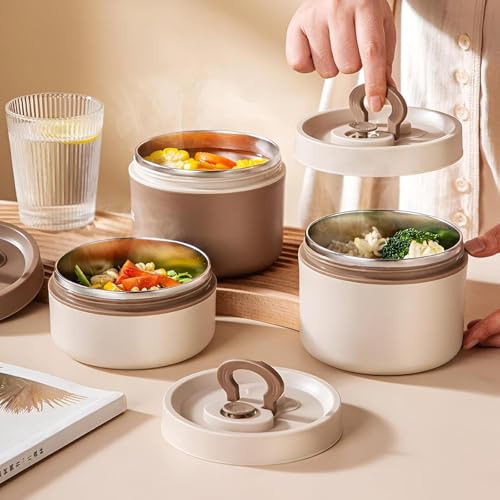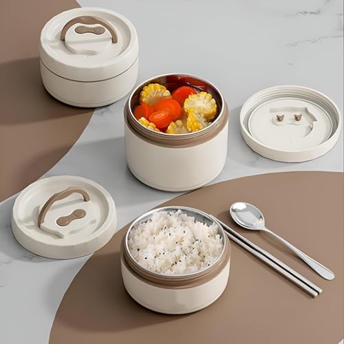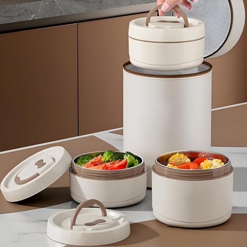 Generic - لانش بوكس حراري، علبة حفظ طعام معزولة قابلة للتكديس من 3 طبقات، من الفولاذ المقاوم للصدأ والبلاستيك الخالي من مادة بيسفينول أ، تصميم مانع للتسرب بمقبض، لون بيج وبني