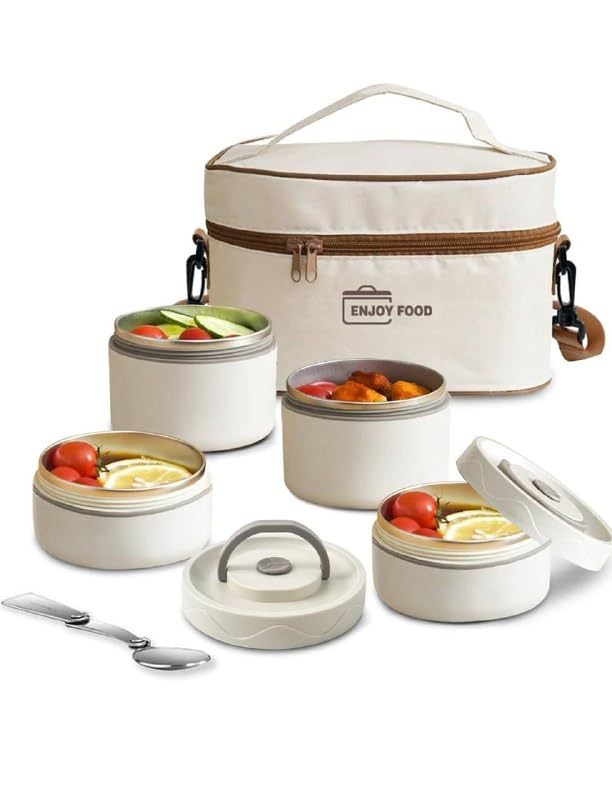 Generic - طقم علب طعام حرارية 4×1 – علب متعددة الأحجام مع شنطة حفظ – تصميم مانع للتسريب بغطاء سيليكون وفتحة تهوية لحفظ الحرارة والطزاجة في السفر والرحلات