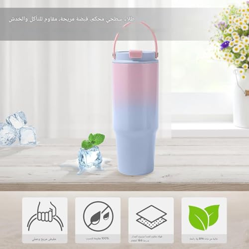 Generic - Thermal Mug - Insulated 900ml with Lid and Straw - This stainless steel mug holds hot and cold beverages, making it the perfect custom car mug for water, coffee, or tea on the go.