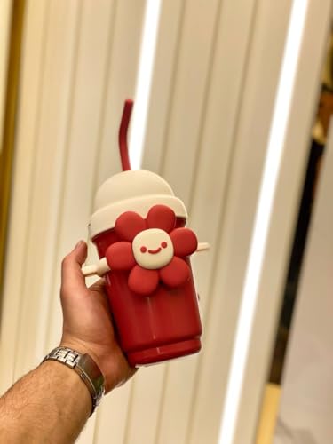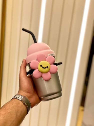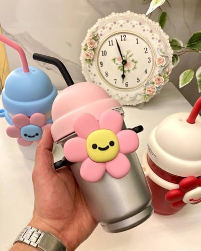 Generic - Thermal Mug with Beautiful Flower Lid, 700 ml, with Shoulder Strap, Multicolor
