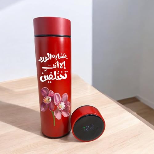 Generic - Thermal mug with digital screen- Red- Mother's Day gift-يتشابه الورد الا أنت تختلفين- Waterproof sticker-one sided printing- We print your gift