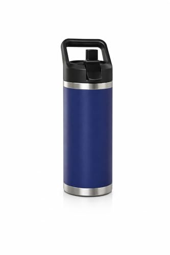 Generic - thermal Stainless Steel Water Bottle 540 ml Vacuum Double Wall Thermal Flask With Straw Lid and Carry Handle Leakproof BPA Free for Gym Travel Office Camping(F-1550) (nevy blue)