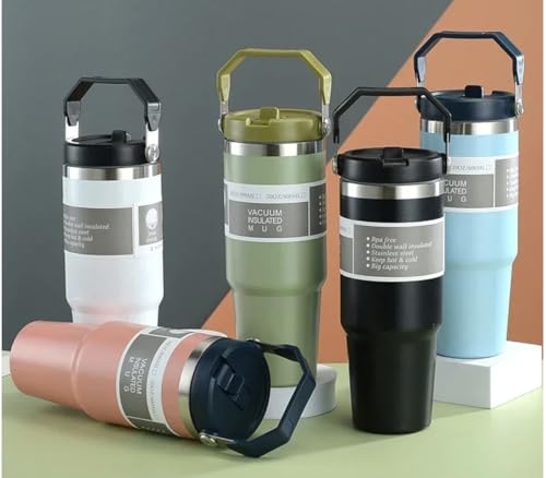 Panlouting - ترمس حراري سعة 30 اونصة/ مل، زجاجة مياه معزولة بجدار مزدوج مع مقبض وشفاطة من فولاذ مقاوم للصدأ 304 لحامل أكواب السيارة والجيم والسفر