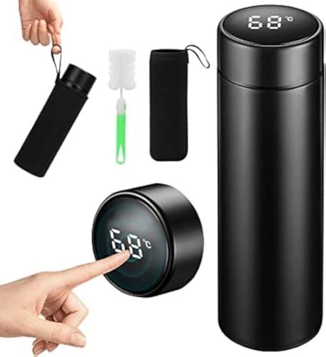 - Thermos Flask, LED Temperature Touch Screen, 500ml Built-in Insulated Cup, Coffee Mug, Take and Drink Bottle, Bottle