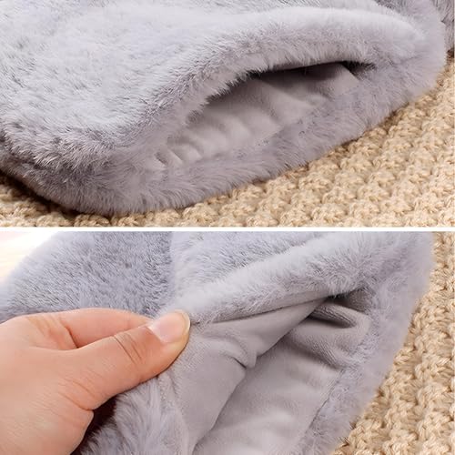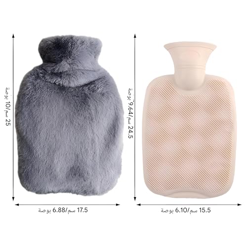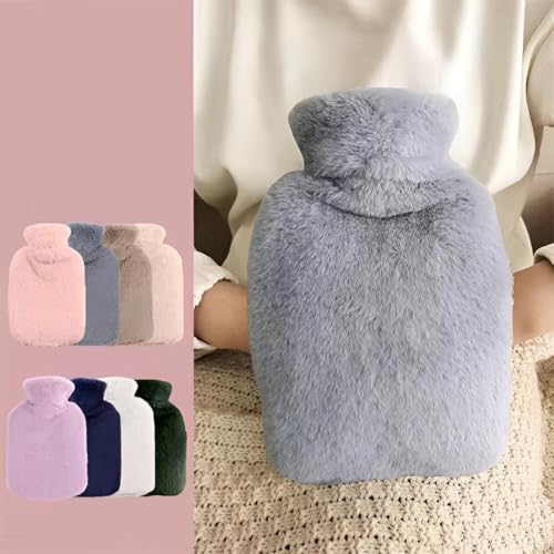 Generic - كيس ماء حراري سعة 1 لتر مع غطاء ناعم من الفرو وغطاء سيليكون للتدفئة السريعة والراحة، مثالي للتشنجات واسترخاء العضلات