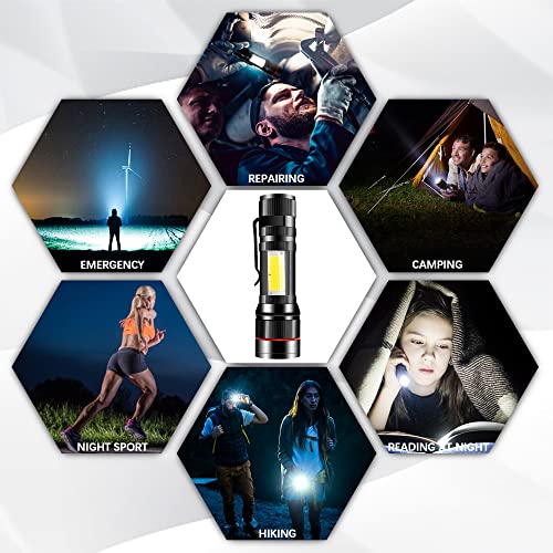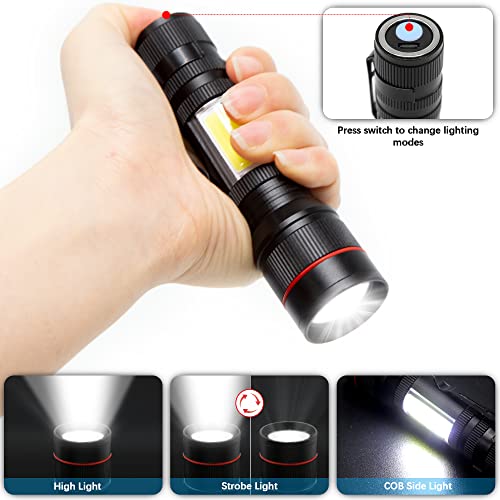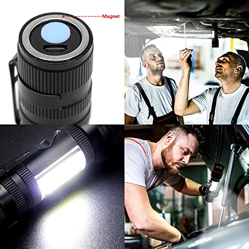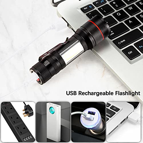 Thimmamma - USB Rechargeable Battery Small LED Torches Zoomable Hand Light and COB Battery Operated Tactical Torch Extremely Bright with Magnet and Clip for Camping Hiking Emergencies Walking