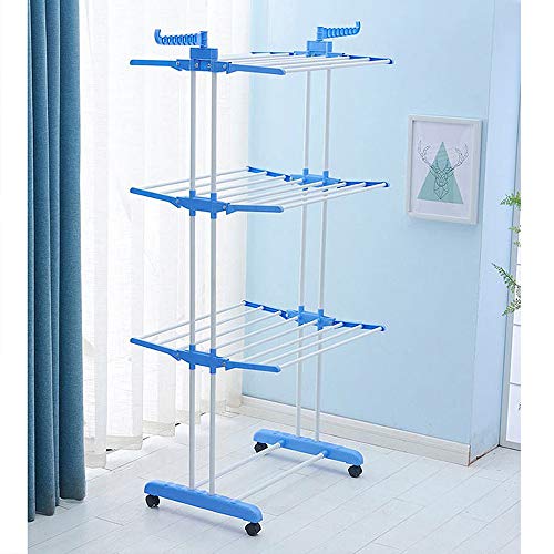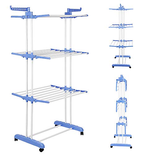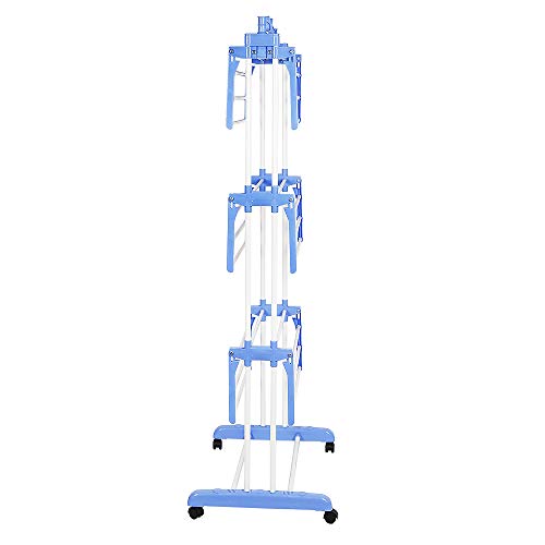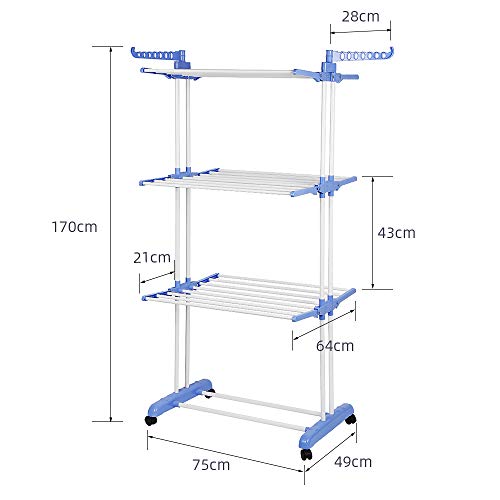 THINFAR - Drying Rack, 4 Levels Vertical Extendable Clothes Drying Rack with Wheels, Stainless Steel Outdoor Balcony Drying Rack, Clothes Drying Rack for Intern-75*64*170 cm (Blue-white)