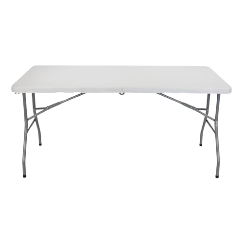 THINIA HOME - طاولة طعام مستطيلة محمولة قابلة للطي من ثينيا هوم ابيض 150 سم متعددة الاغراض للتخييم والمناسبات في الاماكن الخارجية او الداخلية | راتنج وارجل ستيل | 2-4 اشخاص
