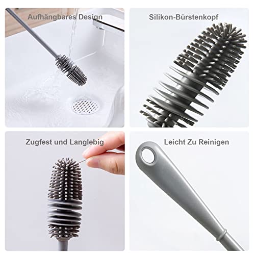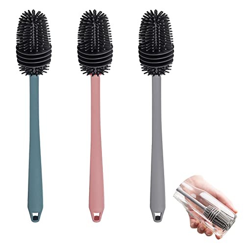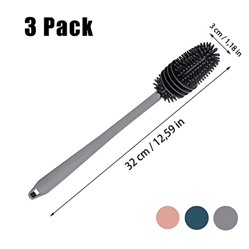 thirei - Bottle Brush, Silicone Bottle Brush, Pack of 3, Suitable for Washing Bottles, Carafes and Thermos Flasks, Silicone, 32 x 3 cm