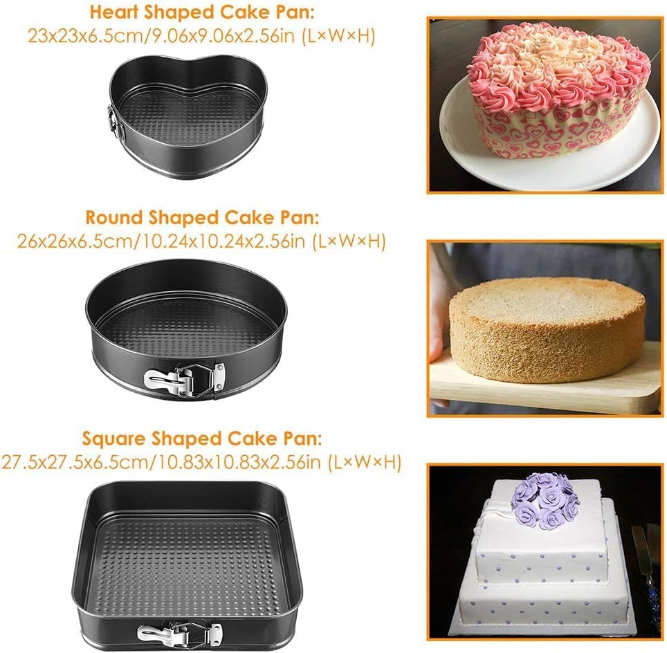 - ✅ 【Multiple Shape Options】Including round, square, and heart-shaped pans, this set provides the versatility to create themed desserts for any occasion, adding a creative touch to homemade cakes and enhancing presentation. ❤️