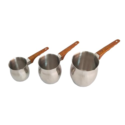 Generic - مجموعة من ثلاث قطع - ثلاثية متينة من الستانلس ستيل مع مقابض بلاستيكية مصممة لتسخين القهوة التركية، تتضمن 6 صغيرة ومتوسطة 12 وكبيرة بسعة 24 بلون فضي انيق