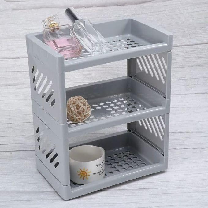 Spaceshoop - رف تخزين لسطح المكتب من 3 طبقات، صناديق تخزين مستحضرات التجميل والعناية بالبشرة، منظم مكياج مقاوم للغبار، منظم سطح المكتب (رمادي)