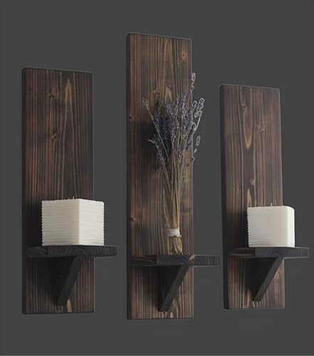 Generic - ثلاث ارفف مثبتة علي الحائط باللون البني، خشب