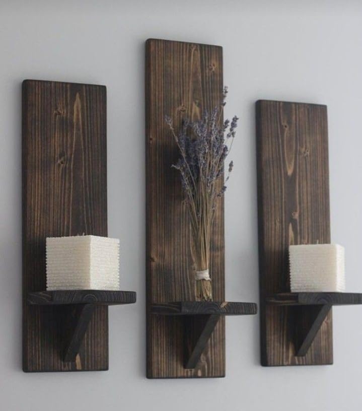 - ثلاث ارفف مثبتة علي الحائط باللون البني