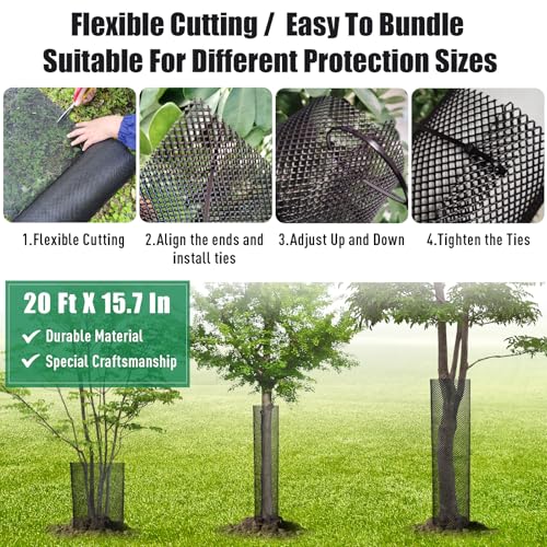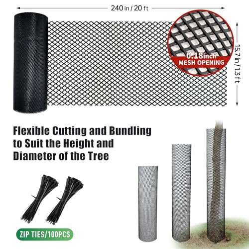 - 【Package Includes】You will receive 1 roll of black 15.7 in x 20 ft plastic mesh tree protectors from deer,100 pcs ties,It's a full sheet of mesh tree protector that can be cut to fit your needs