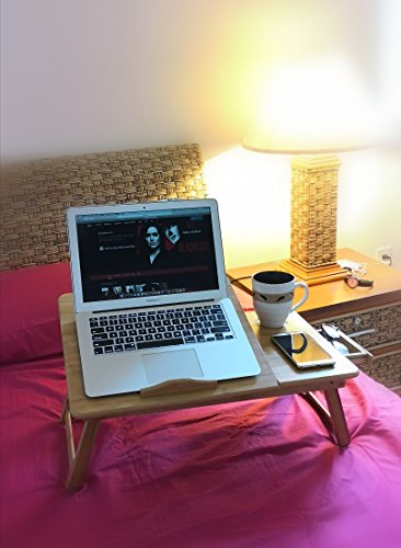 THY COLLECTIBLES - طاولة لابتوب متعددة الوظائف مصنوعة من البامبو من ثاي كوليكتيبلز، صينية لتقديم الأفطار في السرير مع أرجل قابلة للتعديل 50 سم طول × 30 سم عرض