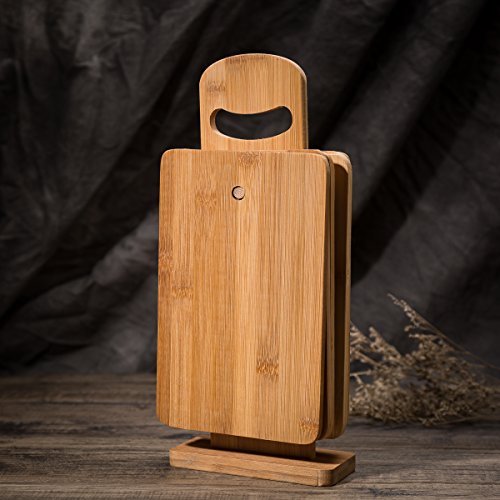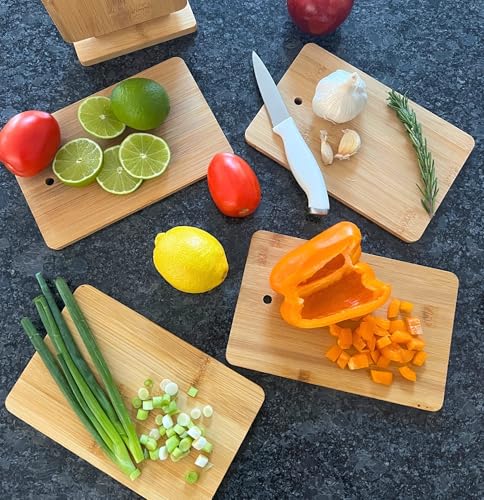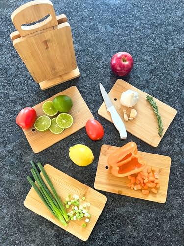 THY COLLECTIBLES - THY COLLECTIBLES Set of 6 Small Bamboo Cutting Boards with Holder Stand - Kitchen Chopping Board Serving Tray for Meat Cheese Fruit and Vegetables (8.75" x 5.5")
