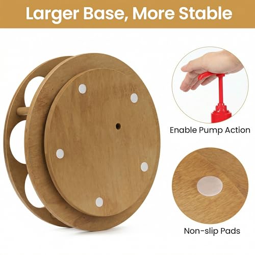 - 【Larger Base, More Stable】This syrup holder is equipped with a large and heavy base, 5 anti-slip pads on the bottom, the overall structure is strong and stable, ensuring stability and balance when you rotate it or push down to pump whether it is on a wooden or marble tabletop.