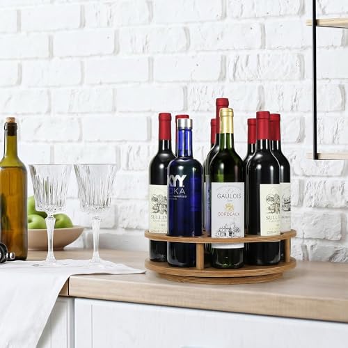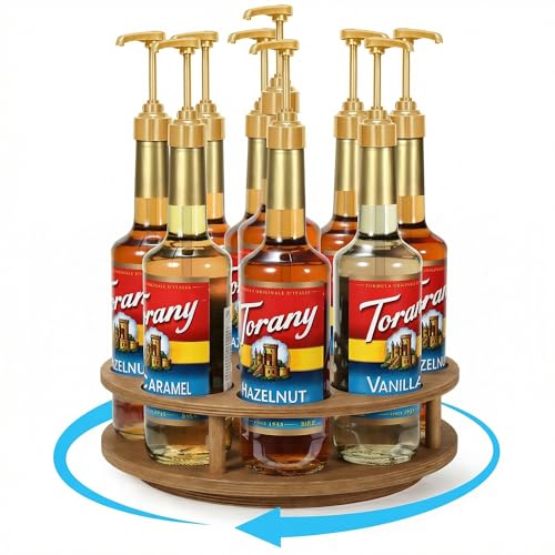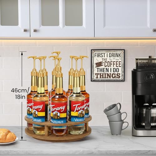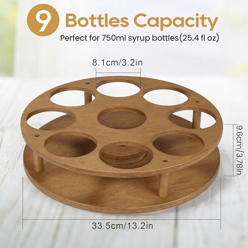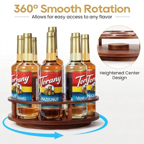 THYGIFTREE - THYGIFTREE Large Rotating Coffee Syrup Organizer 9 Bottles Coffee Syrup Rack for Countertop Wood Syrup Bottle Holder Stand for Coffee Bar Station, Turntable Wine Display Tray, Brown