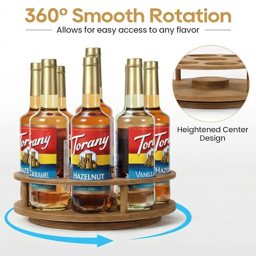 - 【Coffee Syrup Organizer】The rotating syrup rack keeps all flavors syrup neatly organized in one place for easy access when needed, holds up to 9 syrup bottles (25.4 oz/750ml). Designed for countertop placement, keeping your tabletop tidy.