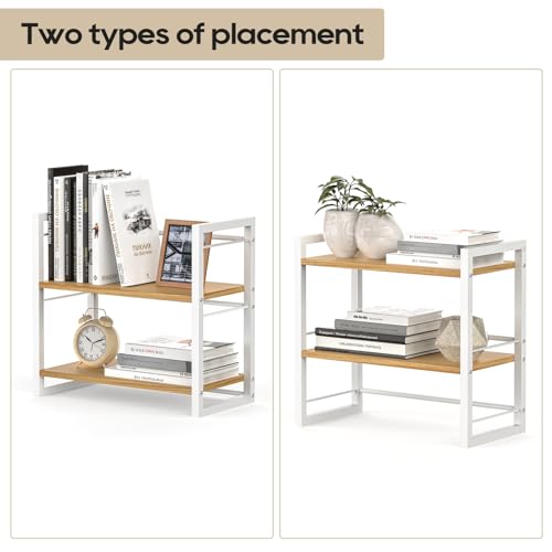 - 【ديكور رائع في المنزل/ المكتب】يمكن استخدام رف المكتب الخاص بنا رأسًا على عقب، مما يزيد من وظائفه لتلبية احتياجاتك. يوفر الرف المكون من طبقتين مساحة تخزين واسعة للمستلزمات المكتبية والكتب والشاشات وعبوات التوابل والنباتات وغيرها.
