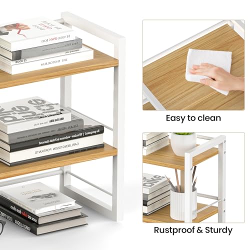 THYGIFTREE - منظم أرفف مكتب لتخزين مستلزمات سطح المكتب الخشب، رف تخزين جمالي للديكور لسطح المكتب ودولاب الملابس من ذايجيفتري (أبيض)