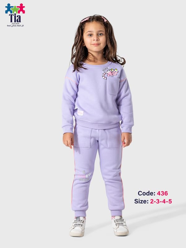 Tia KIDS WEAR - طقم قطن للاطفال "بلاي كاتس" للبنات من تيا كيدز