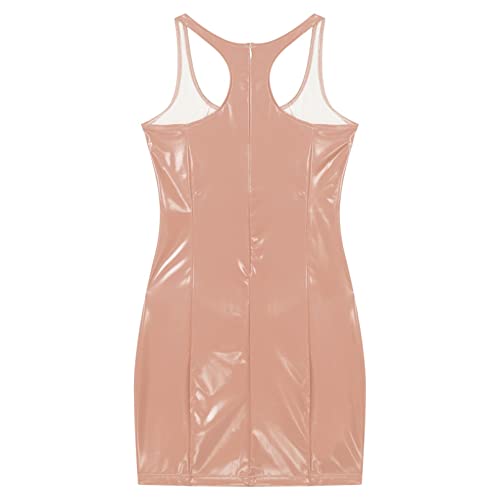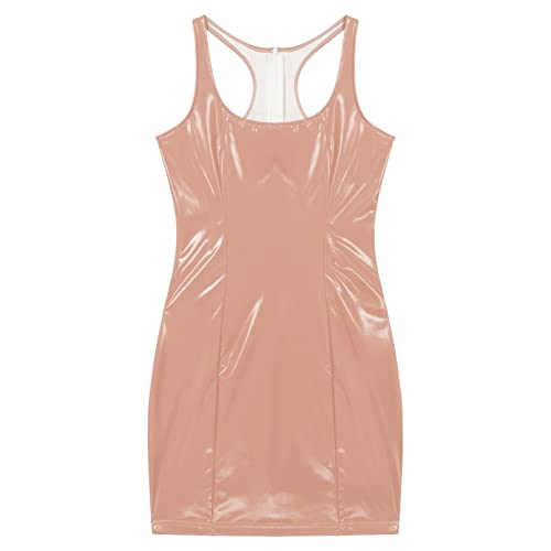 TiaoBug - TiaoBug Women's Shiny Leather Mini Party Dress Babydoll Cocktail Dress Bodycon Push Up Short Skirt Lingerie Leather Lingerie Cocktail Evening Clubwear Disco